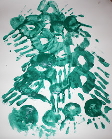 Настоящая елочка у нас, как правило, появляется перед самым праздником, а нам уже хочется, очень хочется! поэтому елку сделали сами!))) ну как сделали - нарисовали! да не просто нарисовали, а подурачились на славу ладошками!